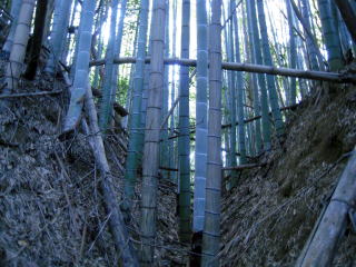 特に二の丸の背後の郭から主郭に向かうまでにある堀切は深さもあり、なお且つ急勾配の切岸となっている。